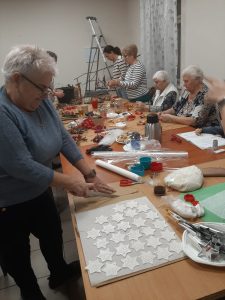 Początek tego tygodnia w UKW upłynął pod znakiem wytężonej pracy twórczej. Ma to ścisły związek ze zbliżającymi się Świętami Bożego Narodzenia i całym okresem świąteczno-noworocznym. W poniedziałek, pod czujnym okiem p. Joanny wykonywaliśmy najprzeróżniejsze ozdoby m.in. na dekorację świąteczną naszej Włosienicy oraz dla siebie. Natomiast we wtorek gościliśmy w siedzibie Muzeum Pamięci Mieszkańców Ziemi Oświęcimskiej w Oświęcimiu biorąc udział w warsztatach malowania aniołków świątecznych. Zdobyto nowe doświadczenia i umiejętności. Kilka fotek poniżej…….. RR